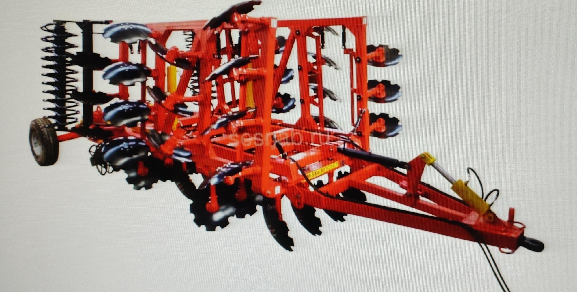 Четырехрядная борона дисковая модернизированная БДМ с подшипниковым узлом внутри сферы диска, с дисками на индивидуальной стойке, с изменением угла атаки дисков синхронно в каждом ряду, предназначена для поверхностной обработки почвы на глубину до 17см, уничтожения сорняков и измельчения пожнивных остатков.